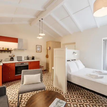 入住Kamari Guest House Corfu Corfu的客人可以在露台上发发呆,步行25分钟即可抵达拜占庭博物馆。